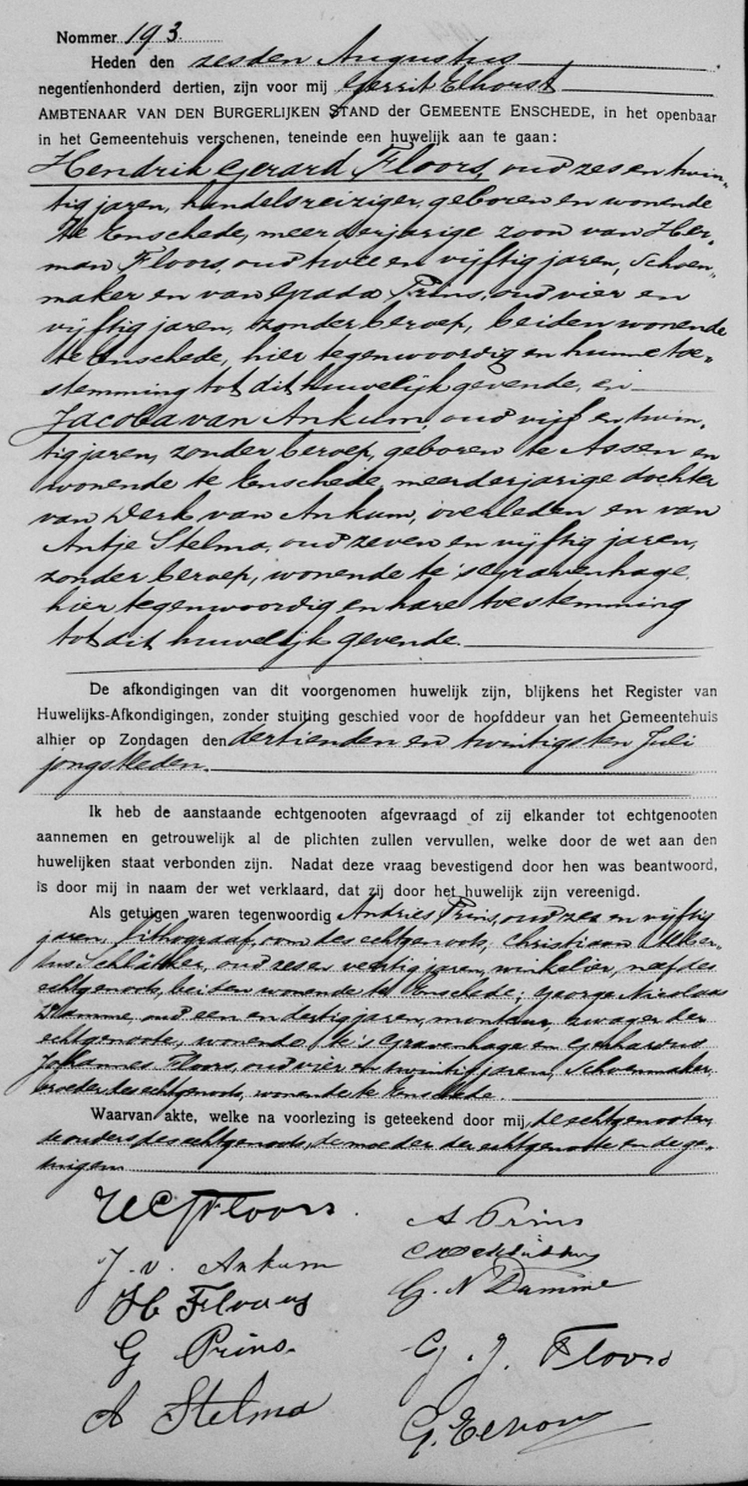 Heirat: 6. August 1913 — Enschede, Enschede, Overijssel, NIEDERLANDE |