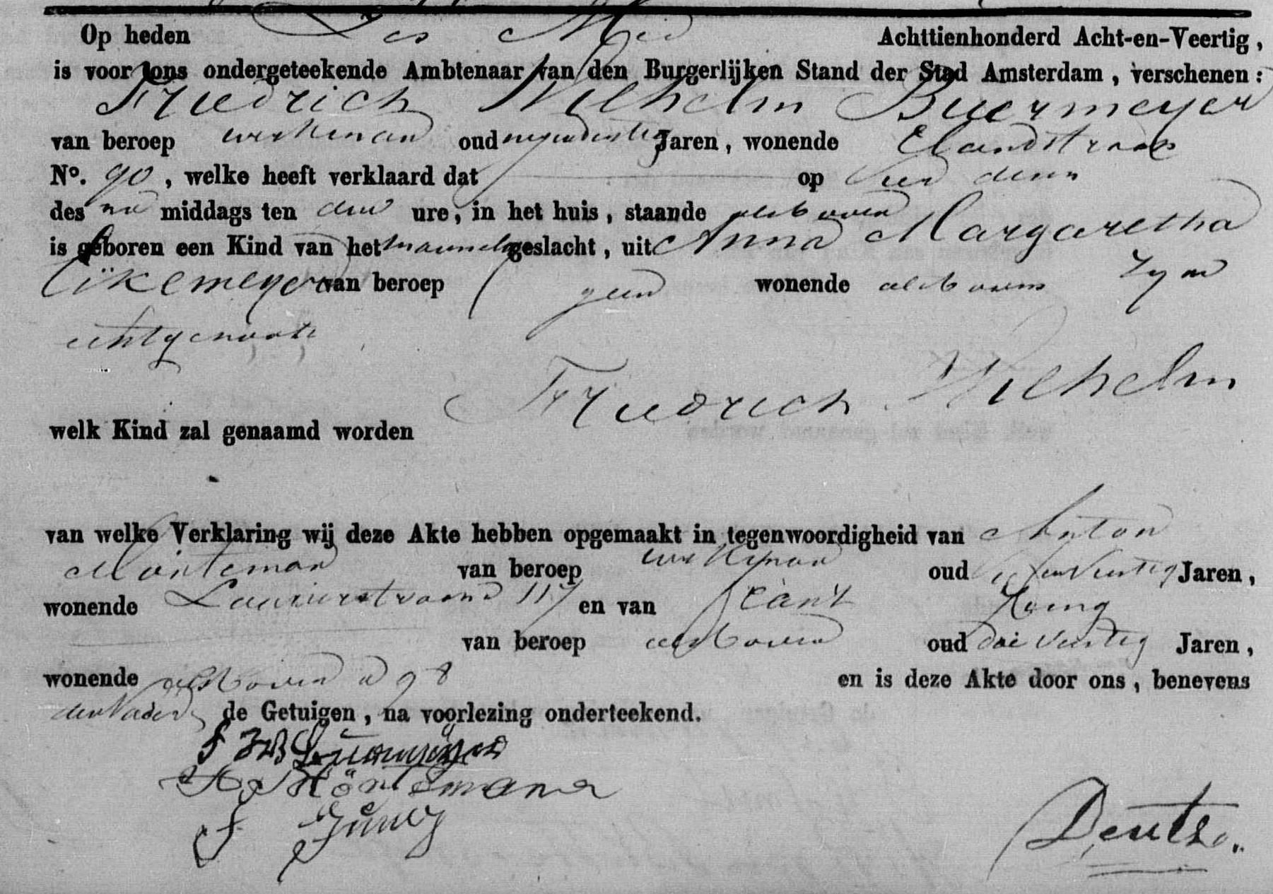 | Geburt eines Bruders | Friedrich Wilhelm BUERMEIJER 4. Mai 1848 Quelle: Amsterdam, Civil Registration |