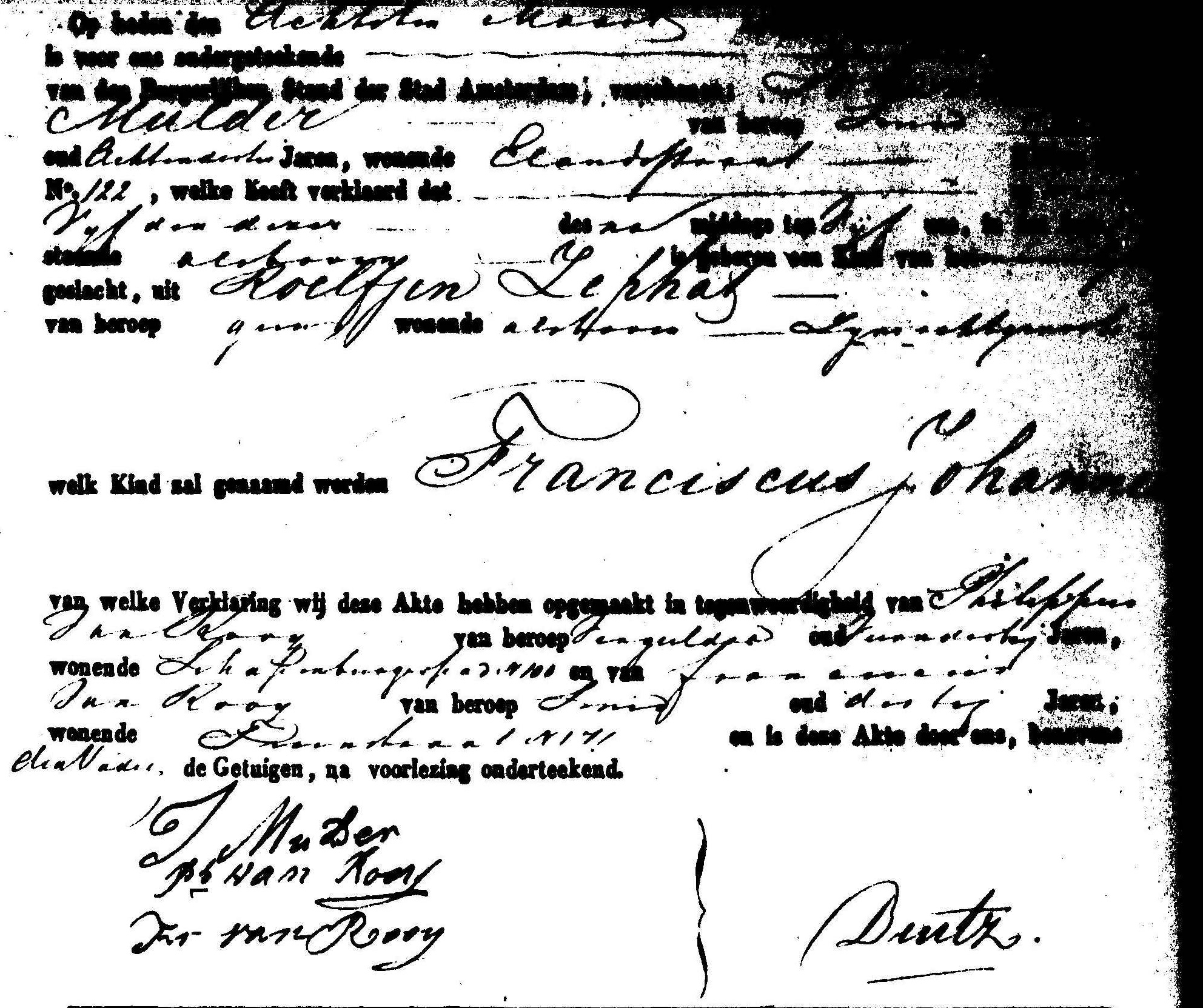 | Geburt eines Sohns #1 | Franciscus Johannes MULDER 5. März 1841 Quelle: Amsterdam, Civil Registration |