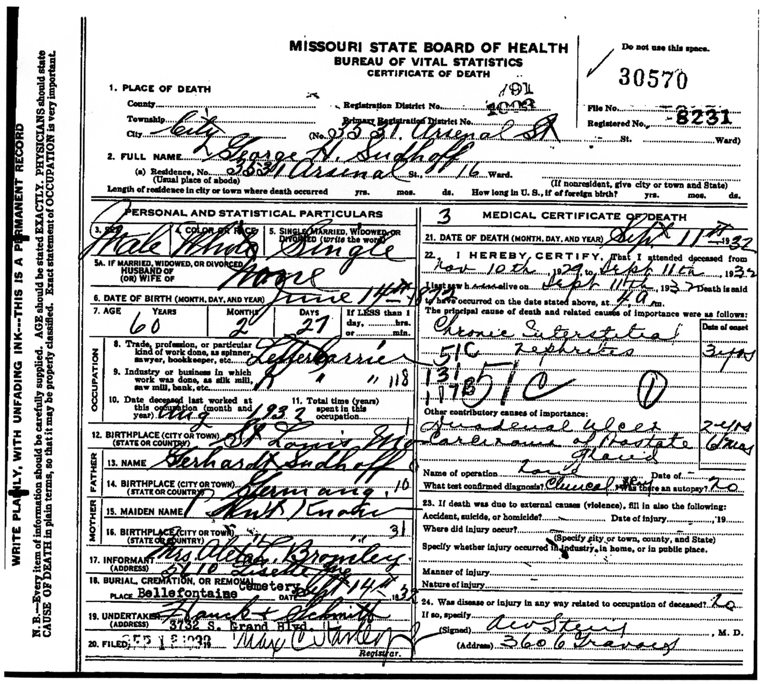 George H SUDHOFF Alter: 60 Jahre1872–1932