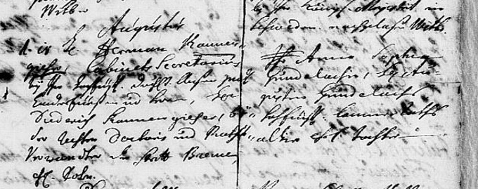 | Heirat eines Kinds | Henrich KÖHNE — Anna KANNENGIEßER — Diese Familie ansehen 2. Februar 1712 (Alter 52 Jahre) |