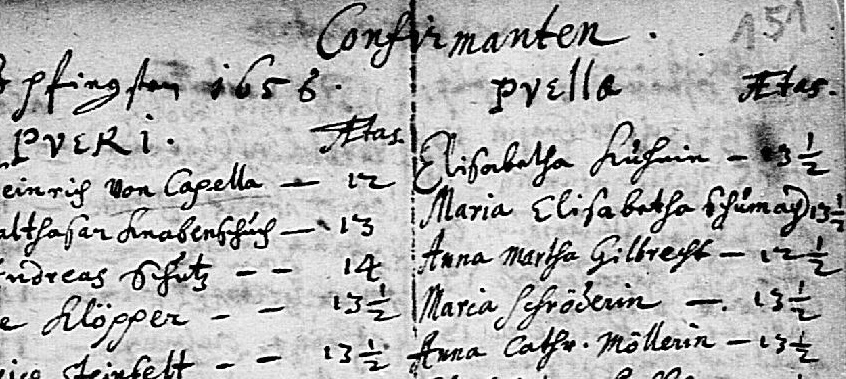 Anna Elisabeth MÜLLER Taufe: 2. August 1641 34 — Cassel - Freiheiter Gemeinde, Kassel, Hessen, DEUTSCHLAND |
