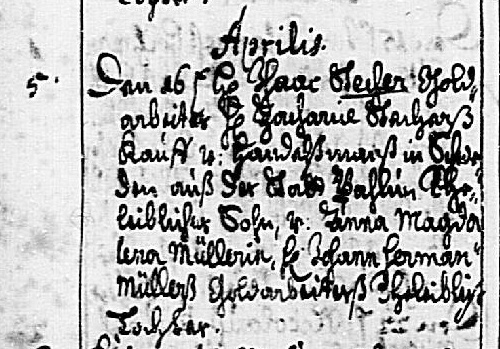 Johannes Jacob MÜLLER Taufe: 2. April 1658 50 — Cassel - Freiheiter Gemeinde, Kassel, Hessen, DEUTSCHLAND |