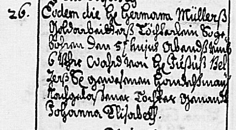 Johanna Elisabeth MÜLLER Geburt: 5. April 1681 34 — Cassel - Altstadt, Kassel, Hessen, DEUTSCHLAND |