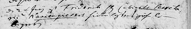 Augustin KANNENGIEßER Taufe: 2. August 1726 19 — Cassel - Hofgemeinde, Kassel, Hessen, DEUTSCHLAND Tod: April 1753 — Kassel, Kassel, Hessen, DEUTSCHLAND |