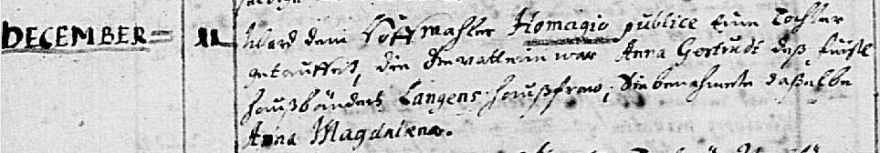 Anna Magdalena HOMAGIUS Taufe: 11. Dezember 1689 47 46 — Cassel - Hofgemeinde, Kassel, Hessen, DEUTSCHLAND |