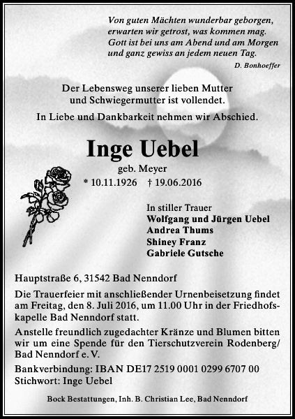 | Tod eines Ehemanns | Gert UEBEL 28. Februar 2008 (Alter 81 Jahre) |