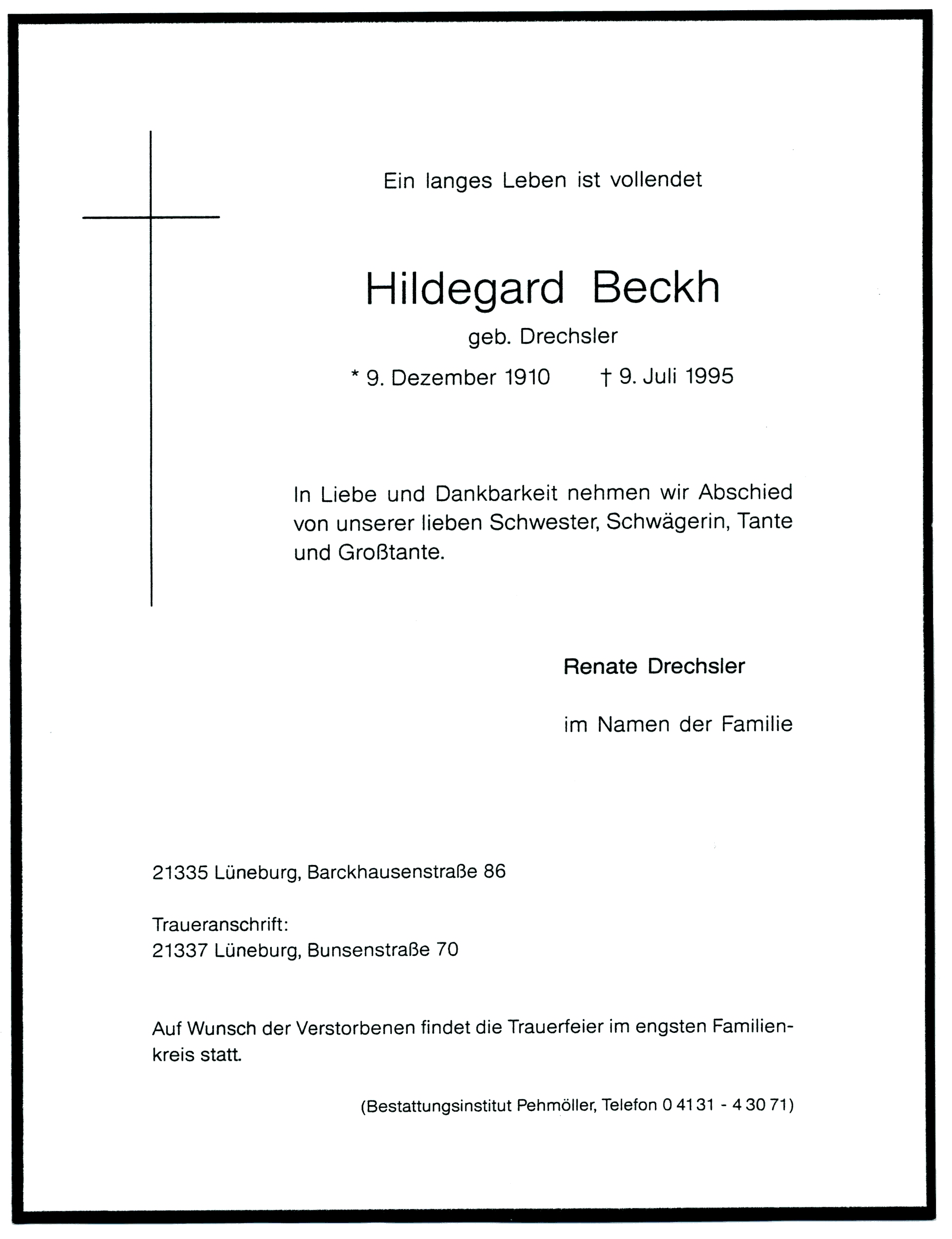 Hildegard Elise Emilie Klara DRECHSLER Alter: 84 Jahre1910–1995