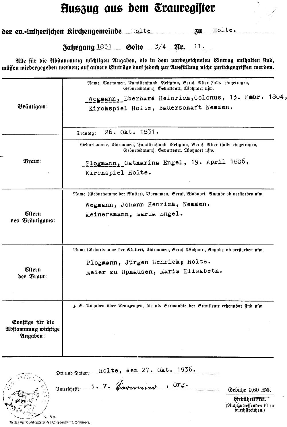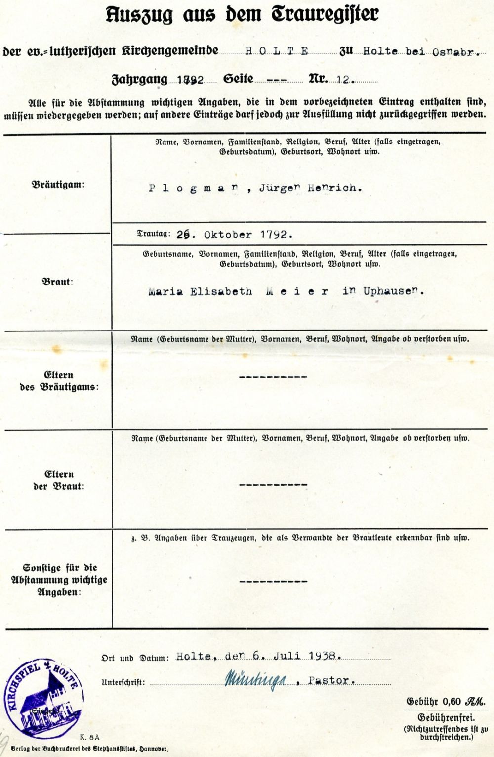 | Heirat | Ehe_Plogmann_Meier.JPG Format: image/jpeg Bildmaße: 1.000 × 1.530 Pixel Dateigröße: 187 kB |