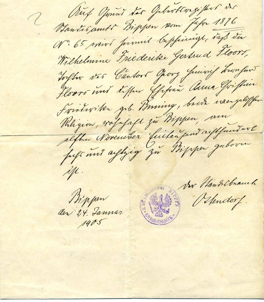 Geburt: 19. Februar 1901 44 32 — Bippen, Osnabrück, Niedersachsen, DEUTSCHLAND Tod: 2. Juli 1902 — Bippen, Osnabrück, Niedersachsen, DEUTSCHLAND |