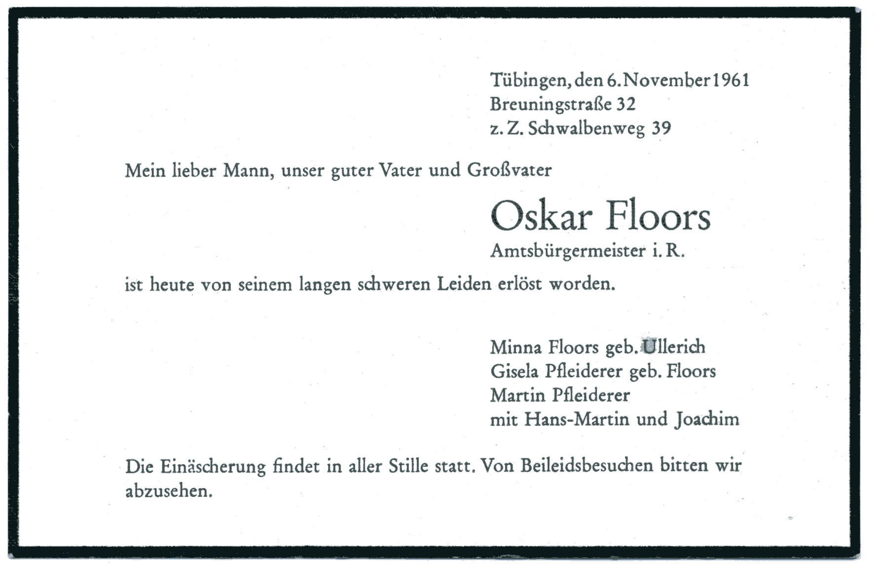 Oscar Gerhard Peter FLOORS Alter: 72 Jahre1889–1961