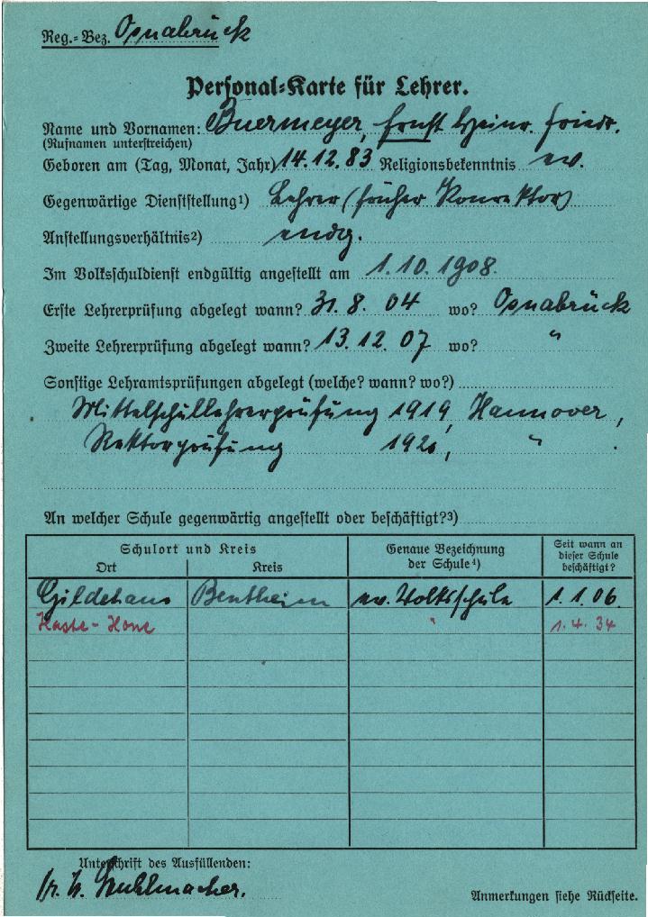 Geburt: 14. Dezember 1883 44 33 — Meesdorf (Melle-Buer), Osnabrück, Niedersachsen, DEUTSCHLAND Tod: 6. März 1945 — Ostercappeln, Osnabrück, Niedersachsen, DEUTSCHLAND |