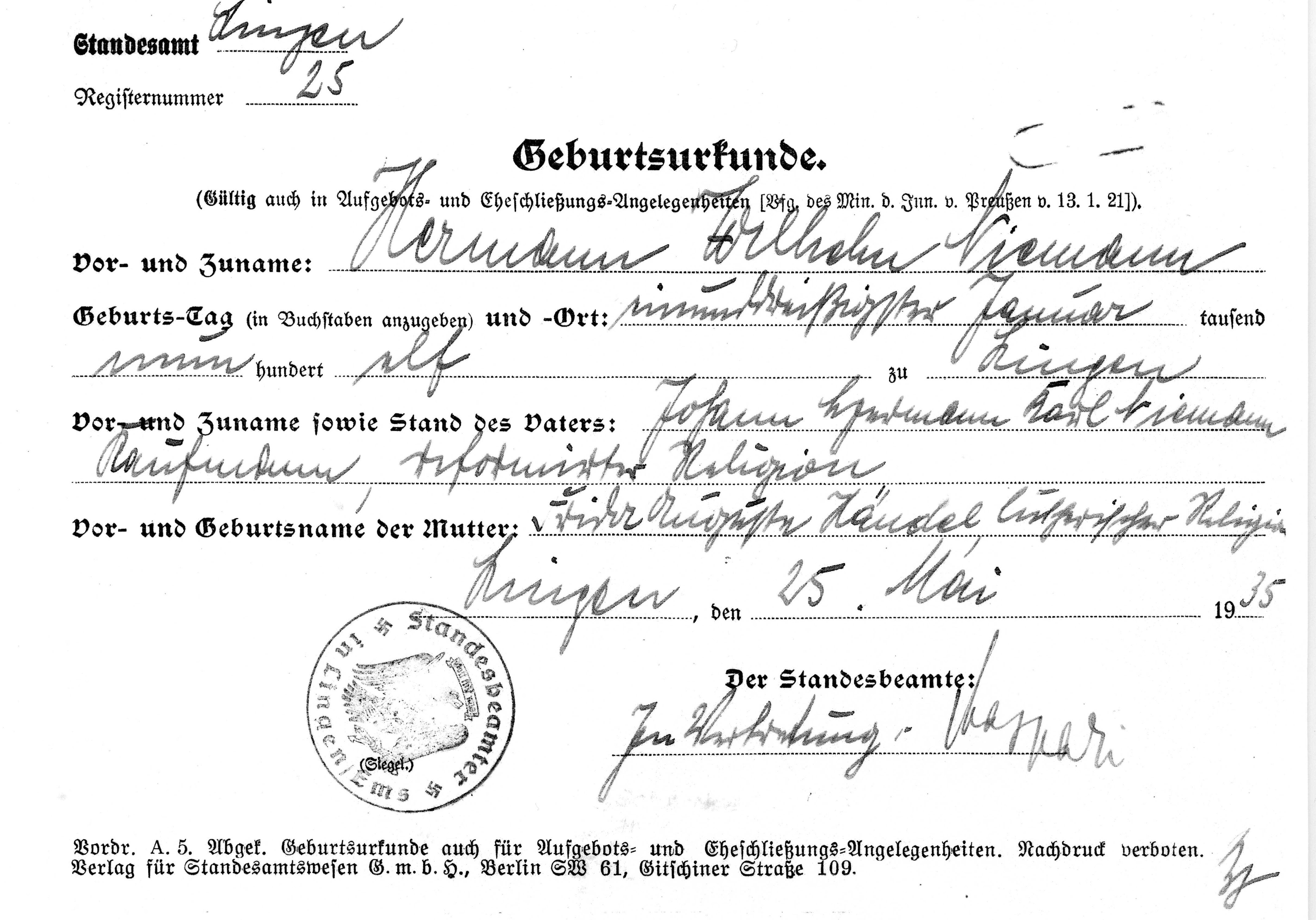 | Geburt eines Bruders | Friedrich „Wilhelm“ NIEMANN 24. Oktober 1919 (Alter 8 Jahre) |