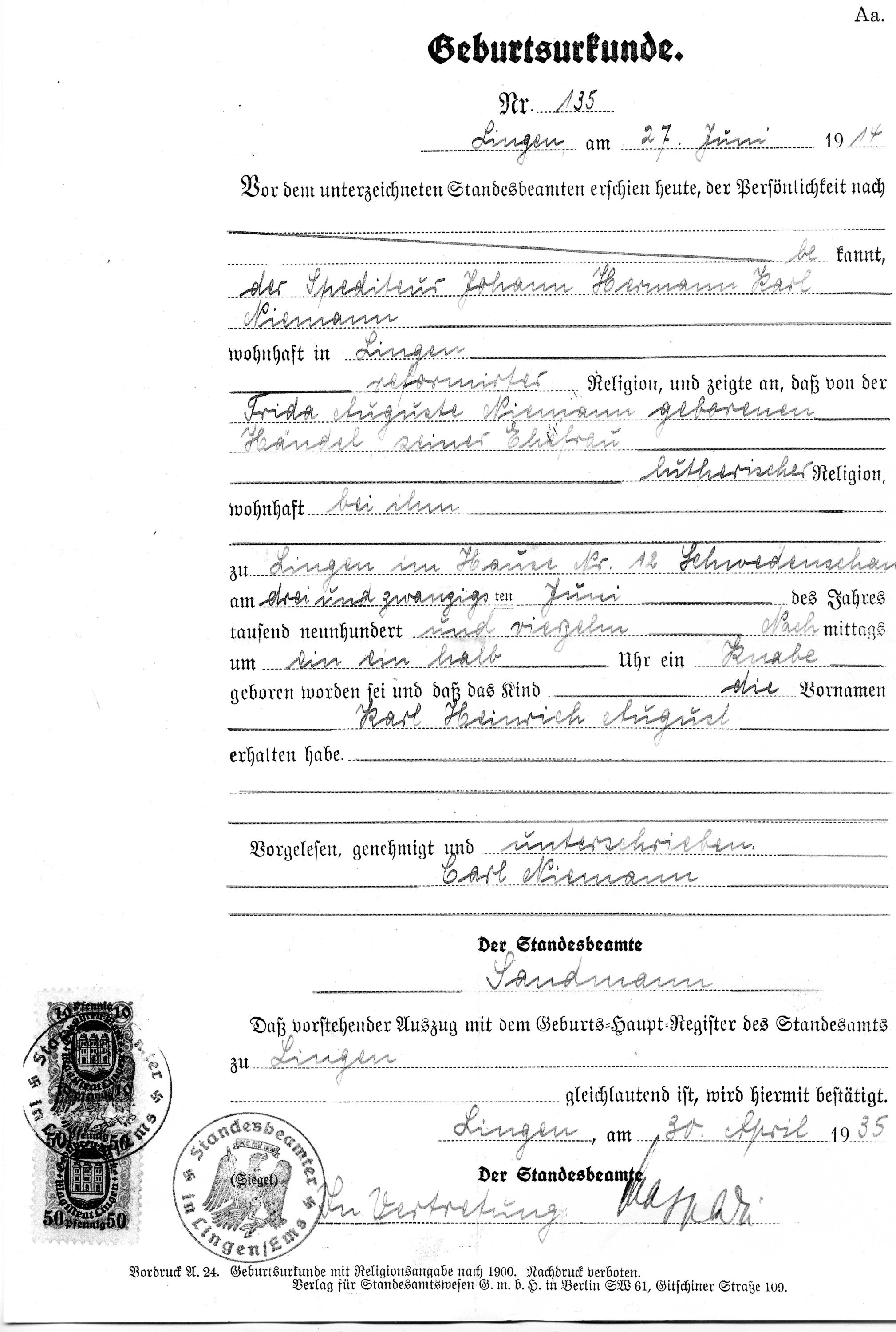 Geburt: 12. Mai 1888 36 27 — Osnabrück, Osnabrück, Niedersachsen, DEUTSCHLAND Tod: 18. März 1950 — Lingen, Emsland, Niedersachsen, DEUTSCHLAND |