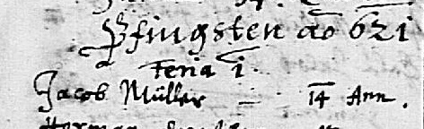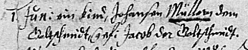 | Taufe eines Sohns | Johannes Jacob MÜLLER 2. April 1658 (Alter 50 Jahre) |