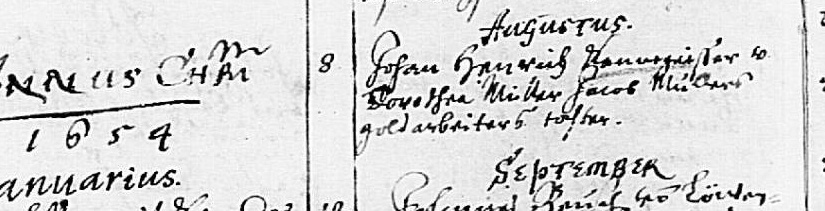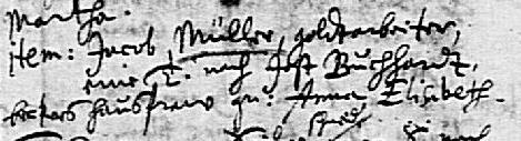 | Taufe einer Tochter | ? MÜLLER 8. Februar 1654 (Alter 46 Jahre) |