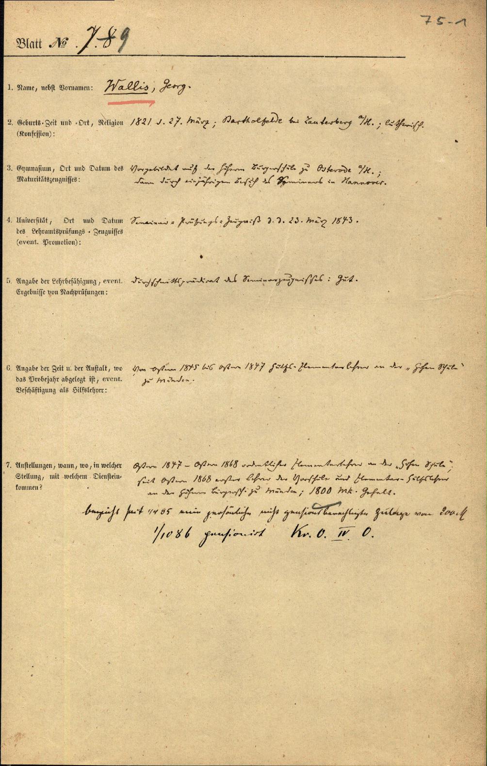 | Geburt eines Sohns #2 | Johann „Georg“ Ludwig WALLIS 27. März 1821 Quelle: Personalbogen |