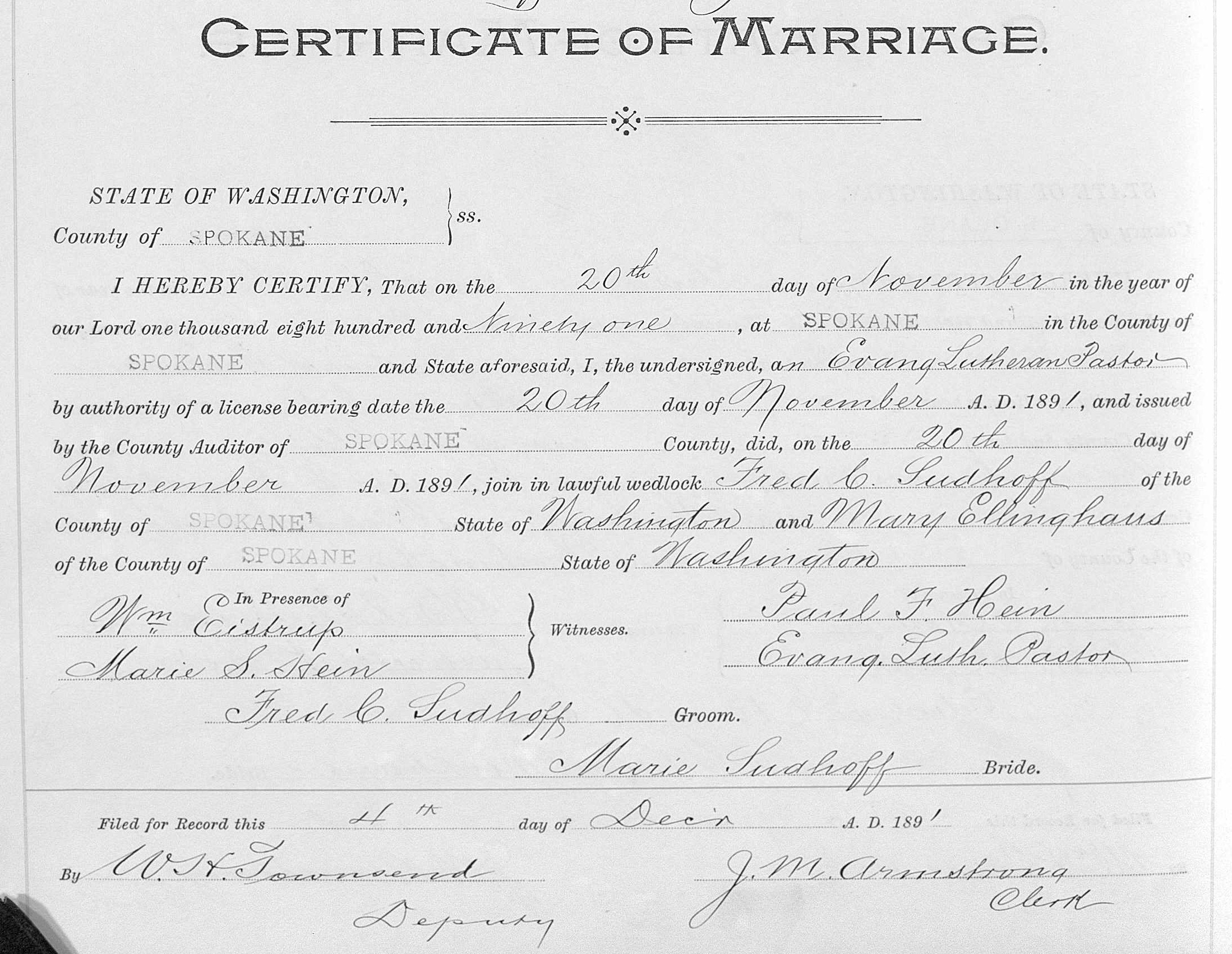 | | | Annie (Anna) Louise SUDHOFF Geburt: 23. Mai 1897 33 26 — Spokane, Spokane, Washington, USA Tod: 13. Juni 1959 — Santa Clara, Kalifornien, USA | | Ida Marie SUDHOFF Geburt: 19. Juni 1901 37 30 Tod: 2. September 1995 — Santa Clara, Santa Clara, Kalifornien, USA | Otto Emil SUDHOFF Geburt: 20. Juli 1903 39 32 Tod: 28. März 1975 — Spokane, Spokane, Washington, USA | | Freda Wilhelmina SUDHOFF Geburt: 10. Juli 1908 44 37 — Elk, Spokane, Washington, USA Tod: 15. Dezember 2004 — Eugene, Lane, Oregon, USA |