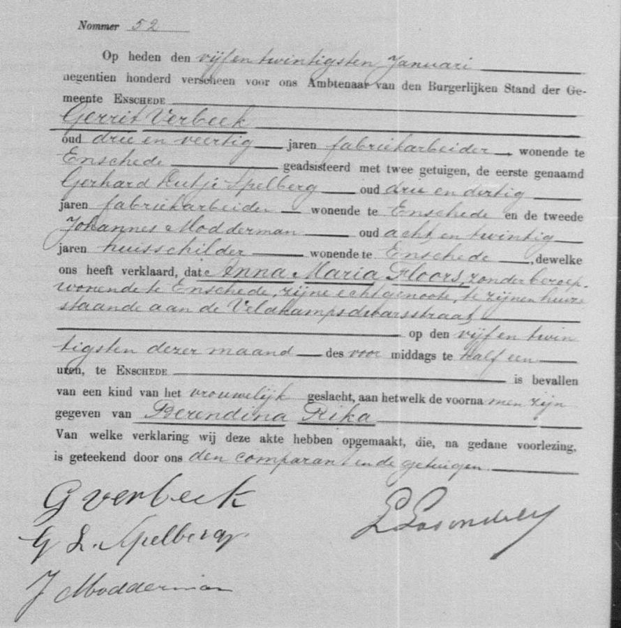 Hendrika Kasperdina VERBEEK Geburt: 10. November 1882 26 25 — Lonneker (Enschede), Twente, Overijssel, NIEDERLANDE Tod: 28. Januar 1883 — Lonneker (Enschede), Twente, Overijssel, NIEDERLANDE |