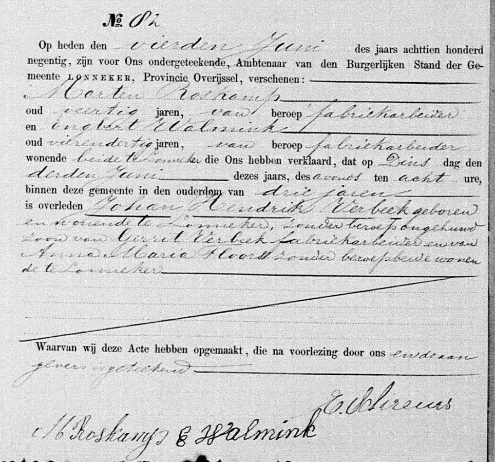 Johan Hendrik VERBEEK Geburt: 20. August 1886 30 29 — Lonneker (Enschede), Twente, Overijssel, NIEDERLANDE Tod: 3. Juni 1890 — Lonneker (Enschede), Twente, Overijssel, NIEDERLANDE |
