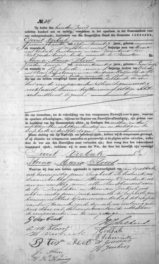 Heirat: 2. Juni 1881 — Lonneker (Enschede), Twente, Overijssel, NIEDERLANDE |