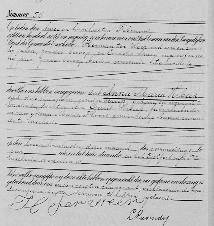Heirat: 2. Juni 1881 — Lonneker (Enschede), Twente, Overijssel, NIEDERLANDE |