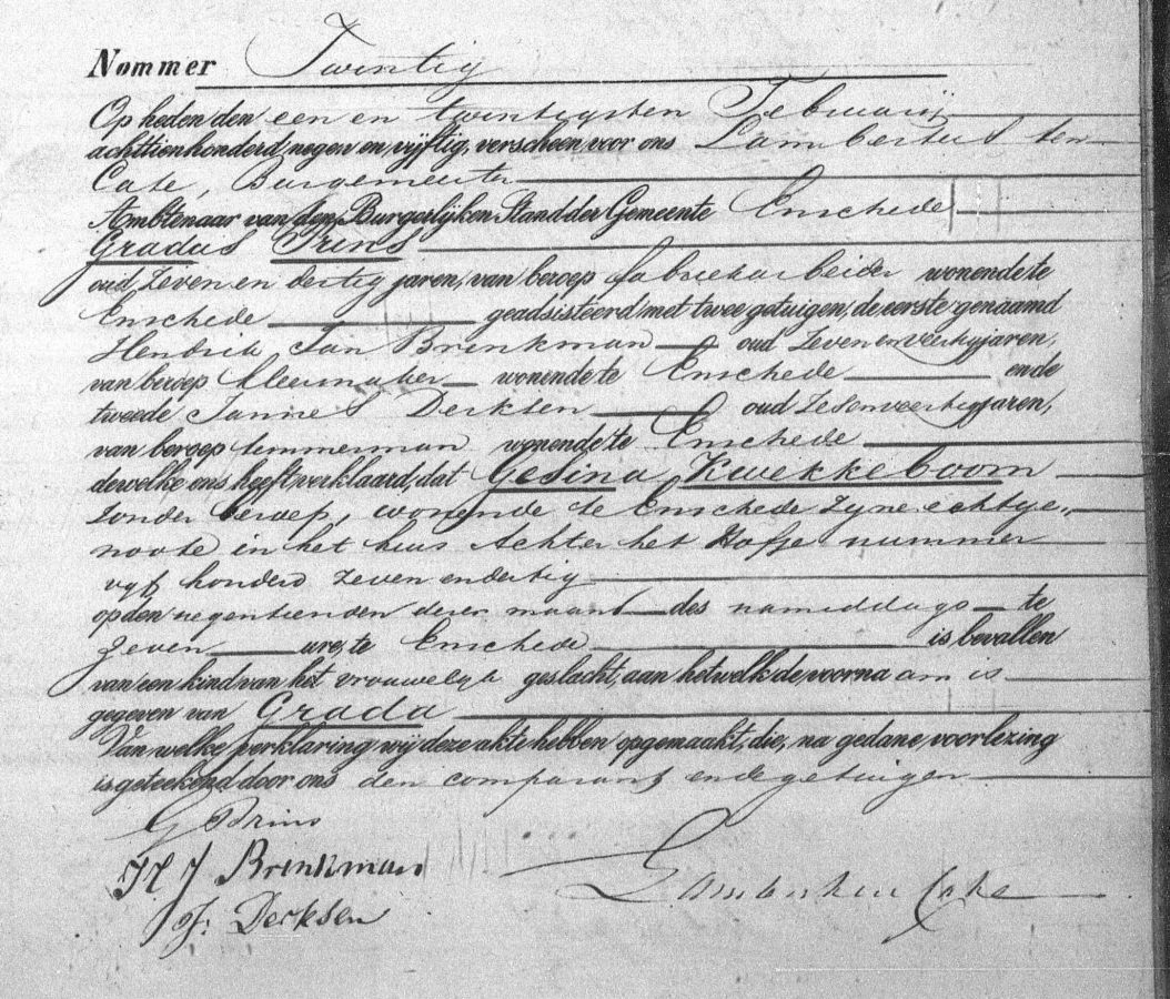 | Geburt einer Tochter #1 | Grada PRINS 19. Februar 1859 |