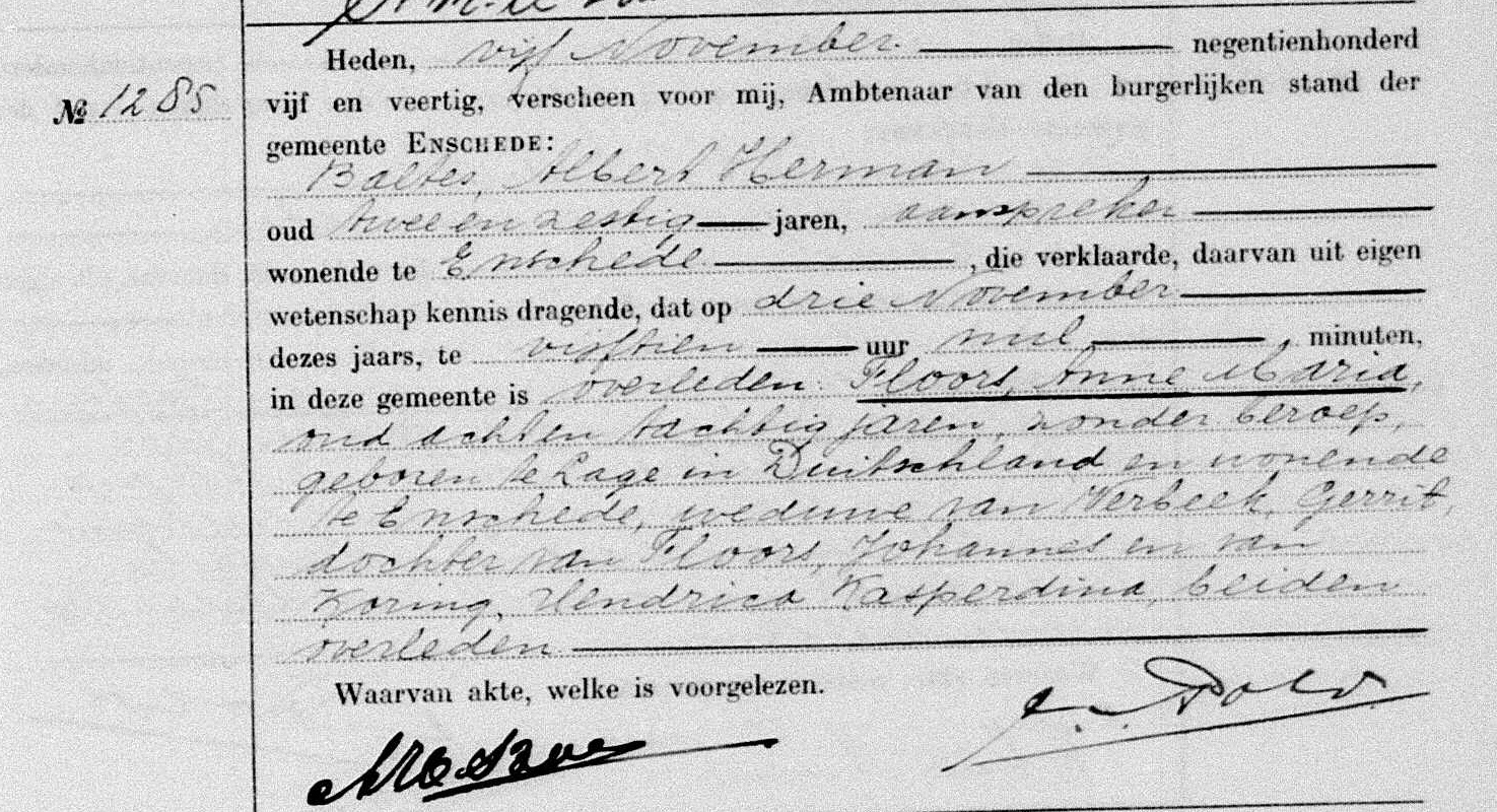 Aaltje SMIT Geburt: 18. Oktober 1893 — Oentsjerk (Tytsjerksteradiel), Tytsjerksteradiel, Friesland, NIEDERLANDE Tod: 18. Februar 1976 — Enschede, Enschede, Overijssel, NIEDERLANDE |
