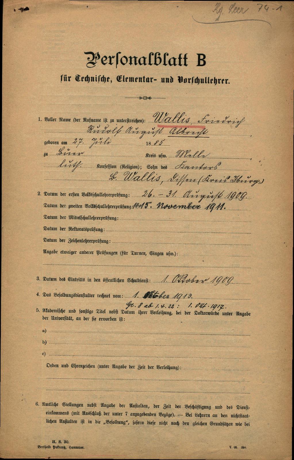 | Geburt eines Sohns #4 | Florenz Georg Ludwig Fritz WALLIS 30. September 1900 (Alter 41 Jahre) Quelle: Personalkarte |