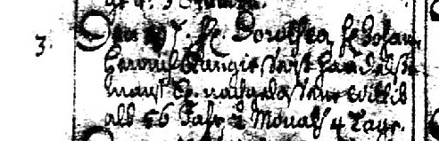 | Beerdigung einer Schwester | Dorothea (Orthia) MÜLLER 19. Januar 1694 (Alter 39 Jahre) Quelle: Kirchenbuch Cassel Altstadt |