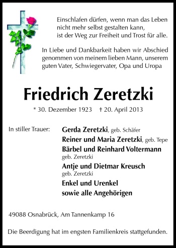 Friedrich ZERETZKI Alter: 89 Jahre1923–2013