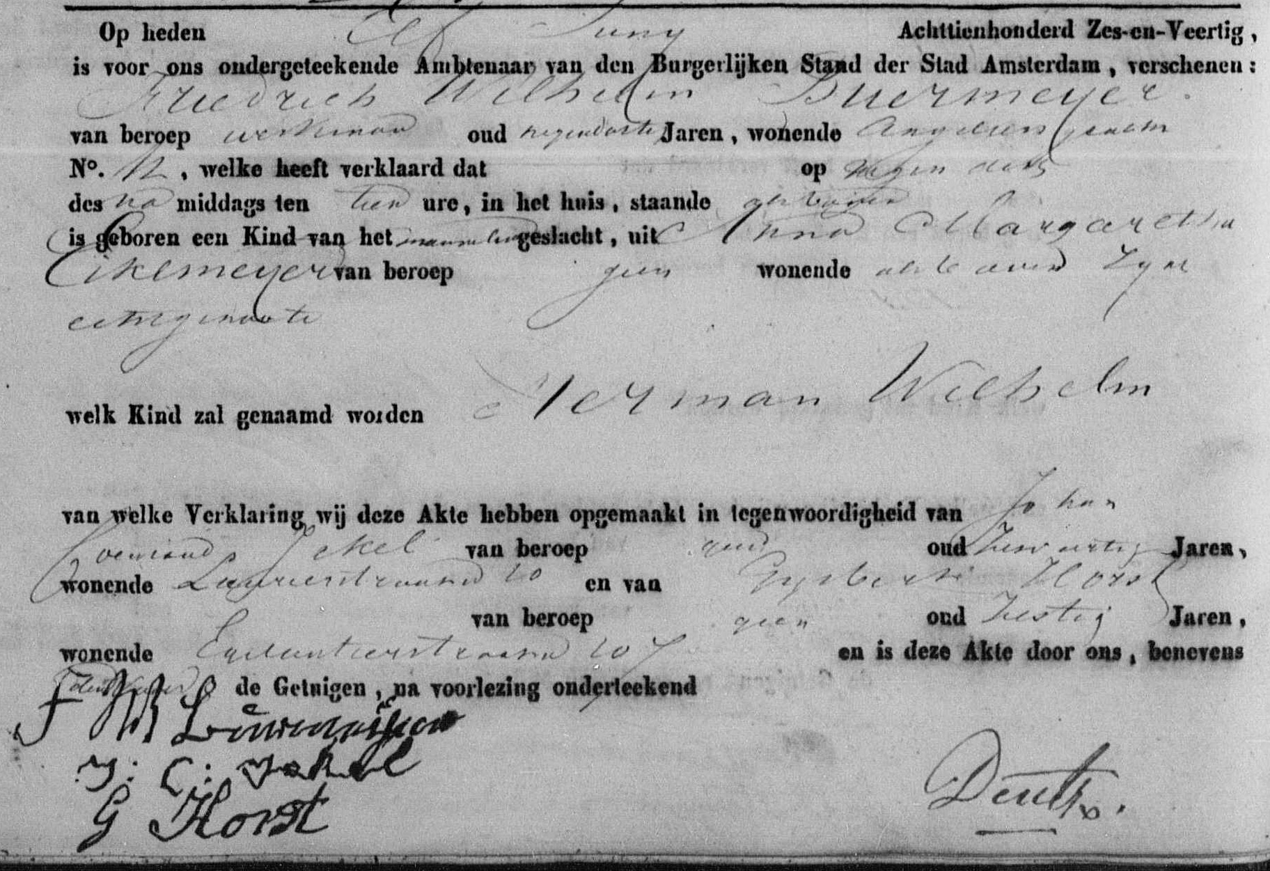 | Geburt eines Bruders | Friedrich Wilhelm BUERMEIJER 4. Mai 1848 (Alter 22 Monate) Quelle: Amsterdam, Civil Registration |