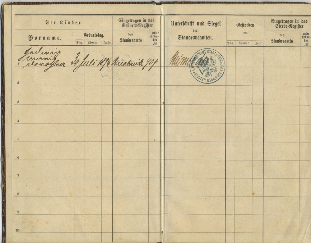 Heirat: 15. Juli 1895 — Osnabrück, Osnabrück, Niedersachsen, DEUTSCHLAND |