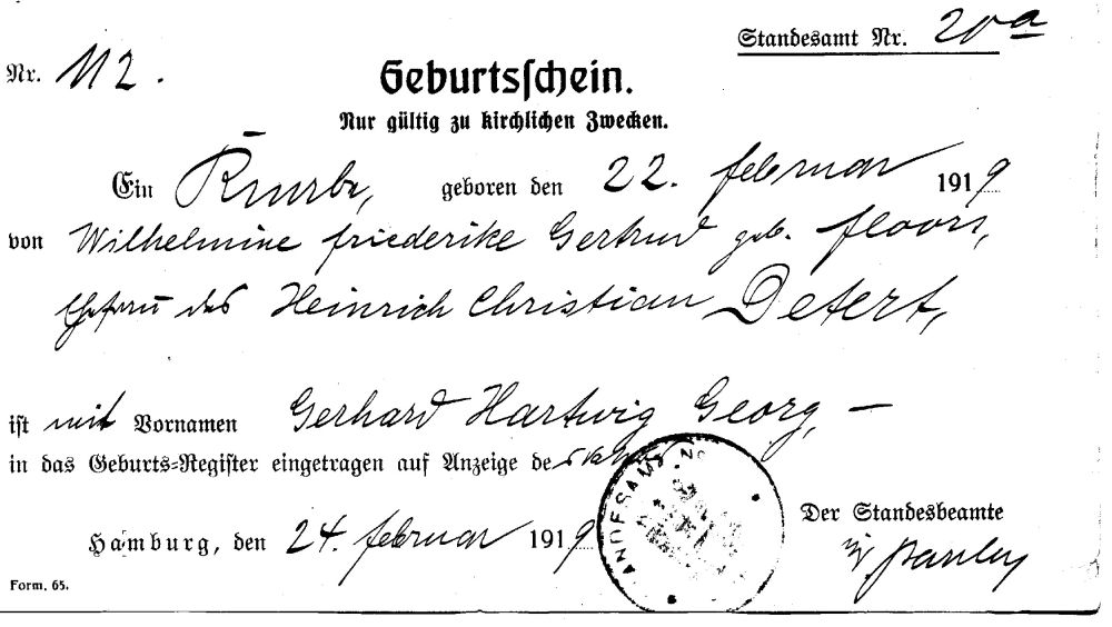 Geburt: 22. Februar 1919 52 32 — Hamburg, Hamburg, Hamburg, DEUTSCHLAND Tod: 12. Januar 1997 — Hamburg, Hamburg, Hamburg, DEUTSCHLAND |