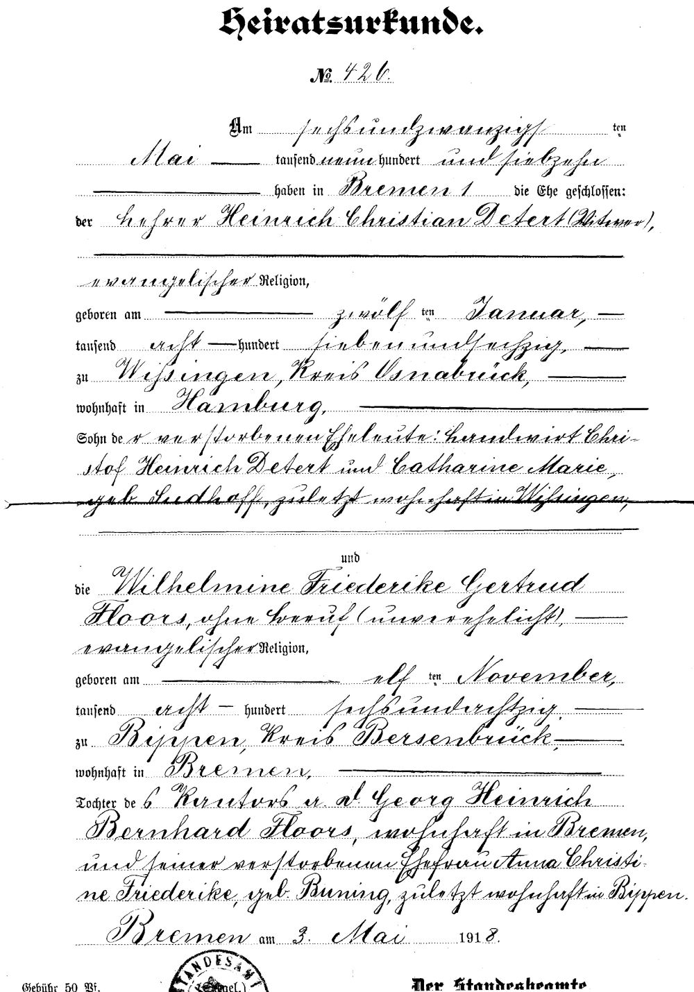 Heirat: 27. Mai 1917 — Bremen, Bremen, Bremen, DEUTSCHLAND |