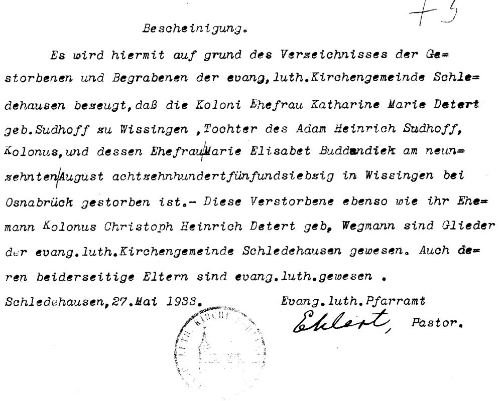 Heirat: 28. Januar 1864 — Schledehausen (Bissendorf), Osnabrück, Niedersachsen, DEUTSCHLAND |