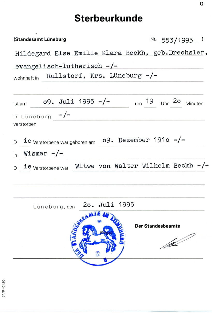 Geburt: 9. Dezember 1910 27 25 — Wismar, Wismar, Mecklenburg-Vorpommern, DEUTSCHLAND Tod: 9. Juli 1995 — Lüneburg, Lüneburg, Niedersachsen, DEUTSCHLAND |