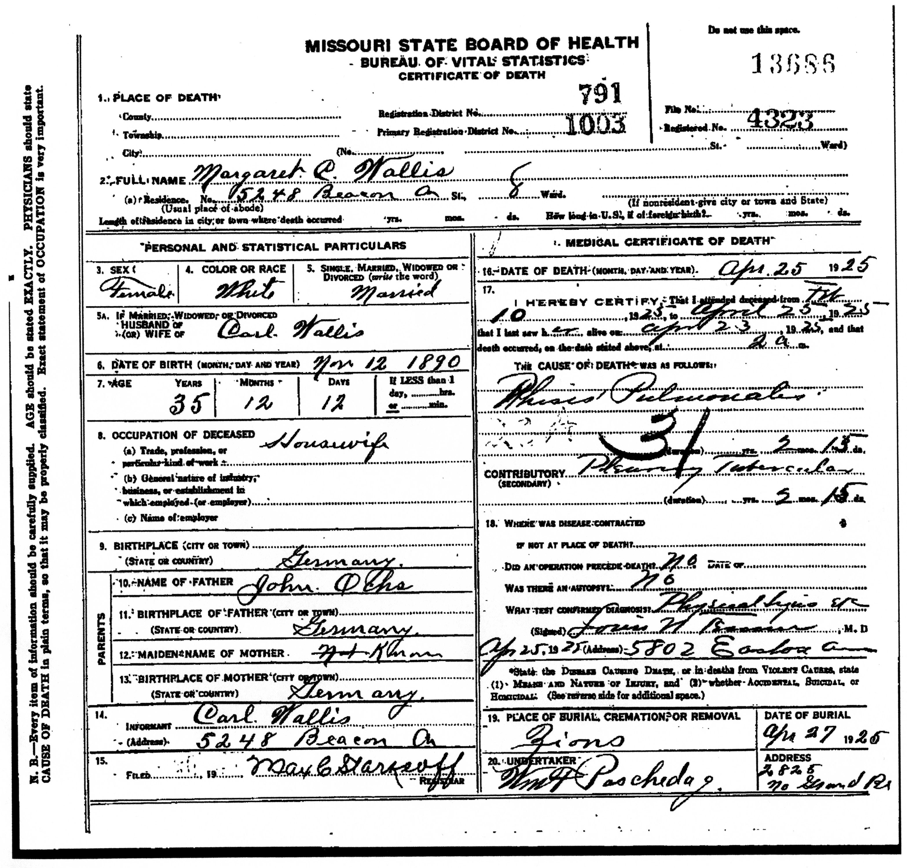 Margaretha Maria WALLIS Geburt: 29. Juli 1895 39 30 — St. Louis, St. Louis, Missouri, USA Tod: 14. Mai 1978 — St. Louis, St. Louis, Missouri, USA |