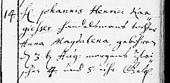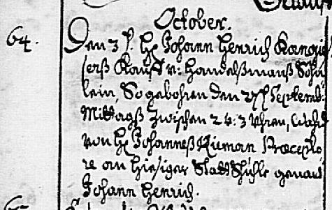 Johann Henrich KANNENGIEßER Geburt: 27. September 1680 53 42 — Cassel - Altstadt, Kassel, Hessen, DEUTSCHLAND |
