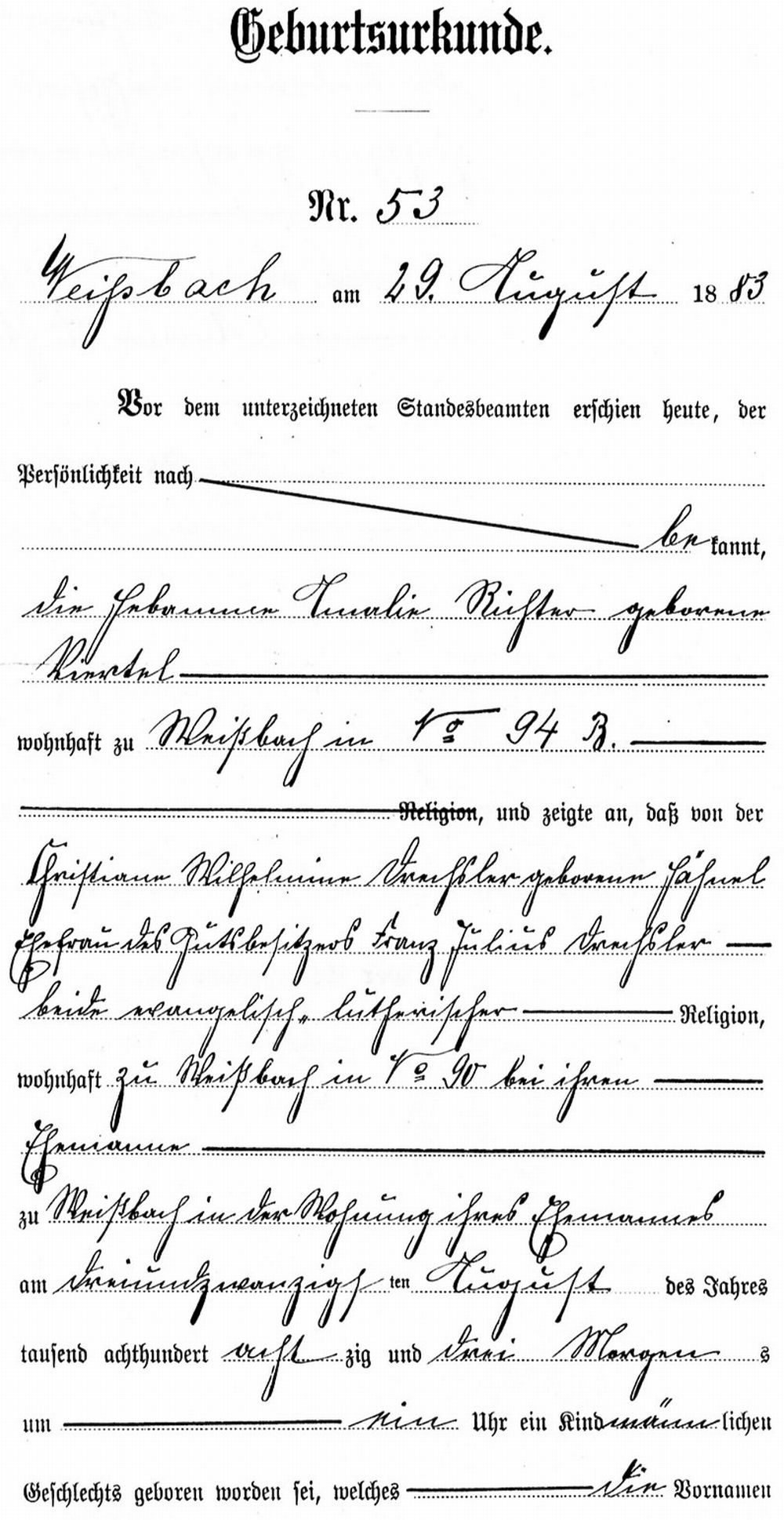 | Geburt eines Bruders | Louis Richard DRECHSLER 23. August 1883 |
